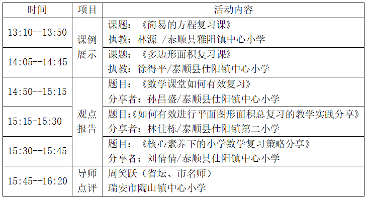 王庆 瑞安市陶山镇中心小学 刘倩倩 泰顺县仕阳镇中心小学